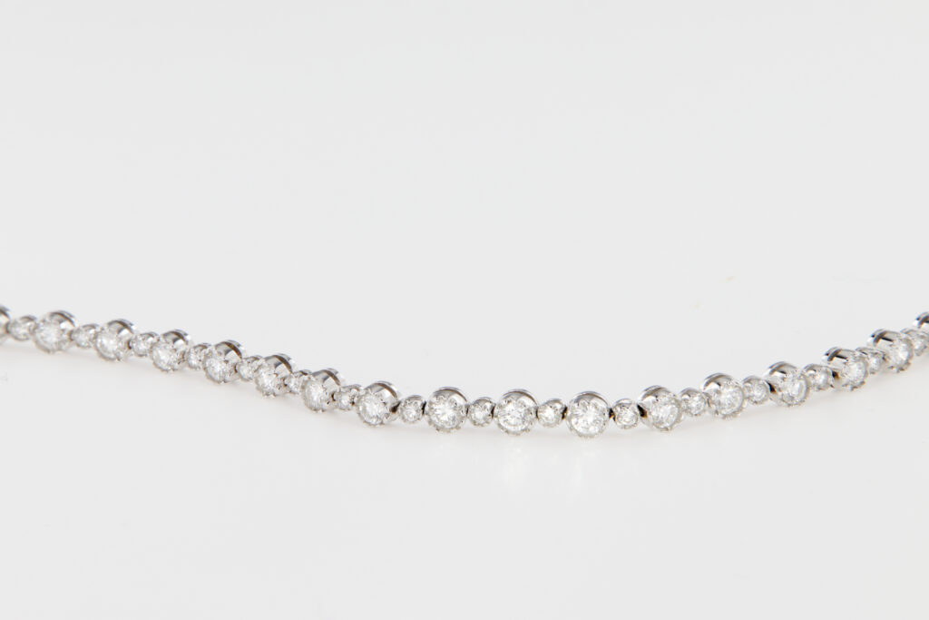 Ormai in tanti conoscono il tennis bracelet; un bracciale costituito da una fila continua di diamanti incastonati in una montatura in oro con una chiusura a scomparsa anch’essa ricoperta da diamanti.
