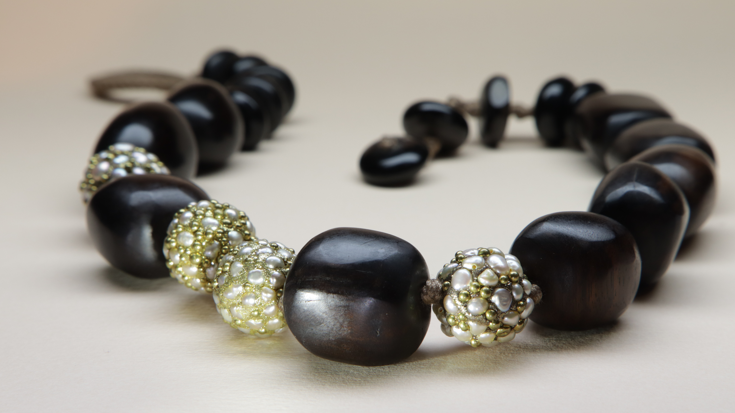 Porcellana e lycra, cashmere e argento, pietre naturali e perle. Il fascino della materia.